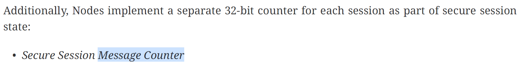 I had a read about Message Counters (4.6, Matter Specification) and found this:
