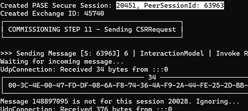 What I also noticed was that the messageId had taken a huge jump! When exchanging the initial PASE messages, the messageId was 154562905.