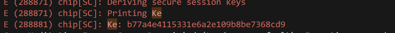 ChipLogError(SecureChannel, "Ke: %s", hex);