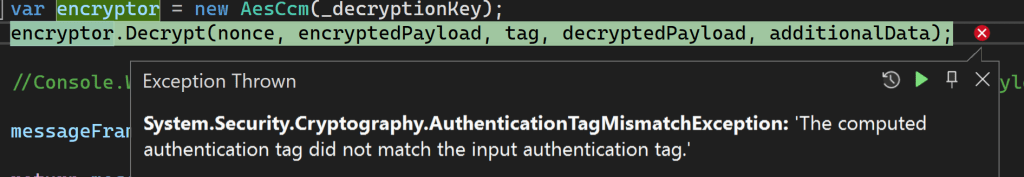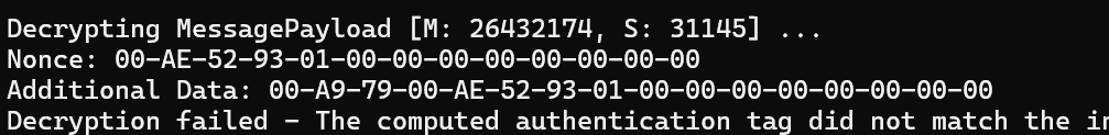 Sometimes it seems like the decoding would work and other times it would fail. In this case, the message appeared to get decoded, but the payload was junk 😟
