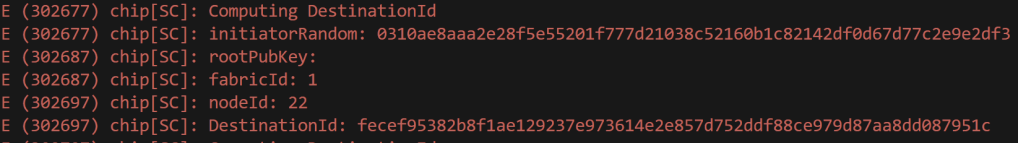 After fixing the rootPubKey display, I noticed something. Nothing of the rootPubKeys in the ESP32 matched the value I was sending. The fabricId and nodeId values didn’t match either, but I put that down to printing BigIntegers.