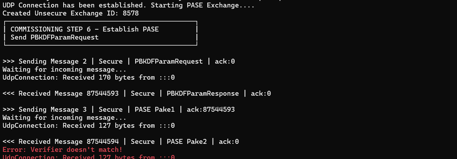 The MessageCounter should be unique for each particular session and since my initial PASE message has a (wrong) value of zero, the matter-device didn’t want to see that message again.