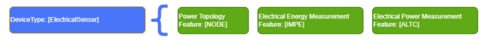 This ElectricalSensor DeviceType is made up of three clusters (in green), as you can see. I needed to figure out how to compose this in matter.js.