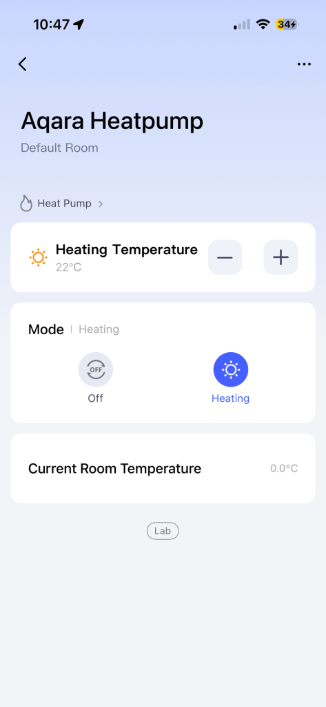 Upon starting the device and pairing with Aqara, I can see my heat pump and my simple thermostat!