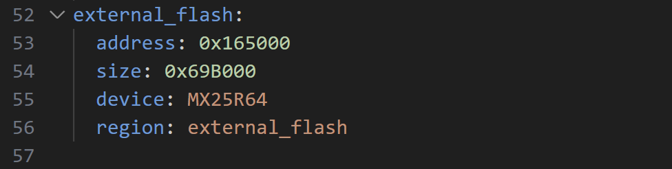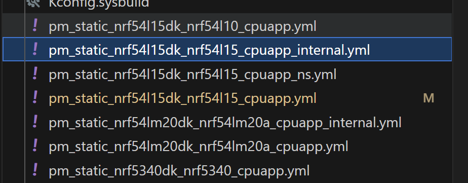 Thinking back to other issues I experienced with XIAO boards, I recalled external flash being a problem. The MS54BE01 Devkit didn’t have external flash, but my overlay & partition has it configured. For example, the pm_static_nrf54l15dk_nrf54l15_cpuapp.yml file has this: