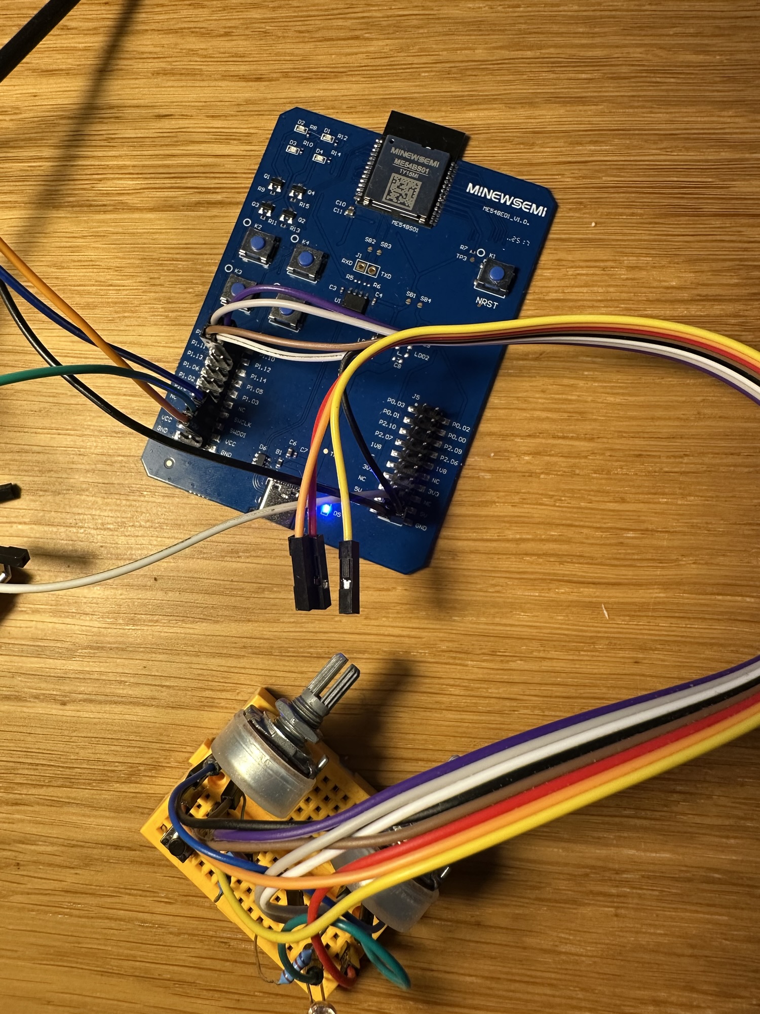 After getting the Blinky sample running on the MinewSemi DevKit, I started by flashing my custom firmware.