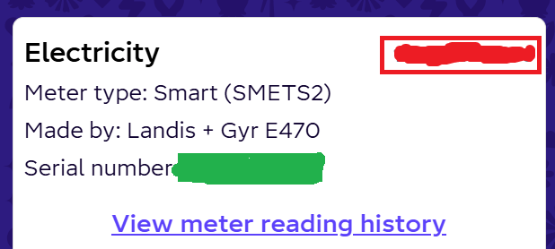 Further down the home page, you’ll find your meter details. The supplyPointIdentifier will be where the red box is.
