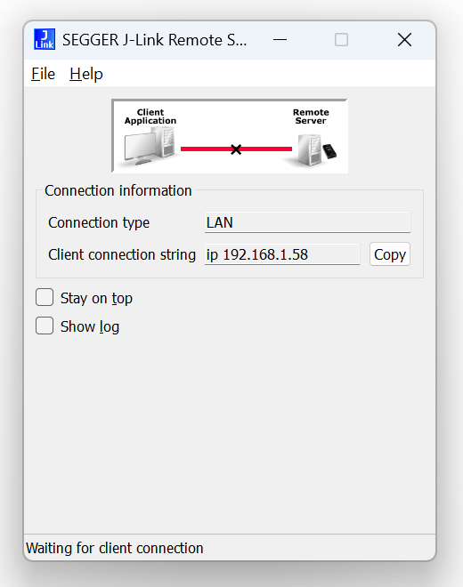 The Remote feature lets you connect to a J-Link device over IP. So I would have it plugged into my PC via USB and connect to it over IP. The Remote Server comes as part of the J-Link package, so I launched it from Windows 11.