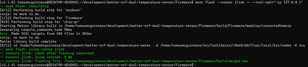 west flash --runner jlink -- --tool-opt="-ip 127.0.0.1"