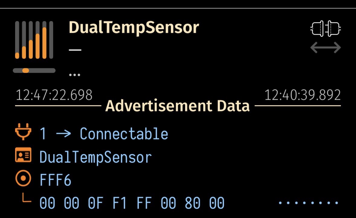 A device called DualTempSensor was advertising, which was incredibly encouraging!