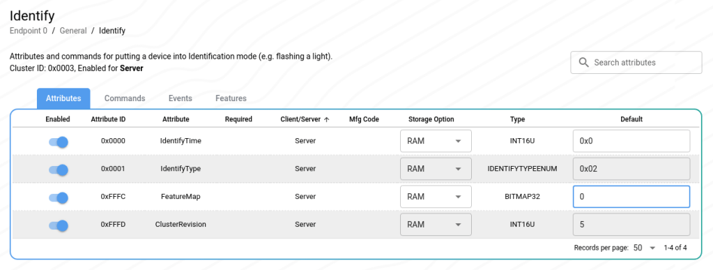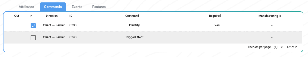 I also checked the Identify command was switched on. This command is mandatory, so it was enabled by default.