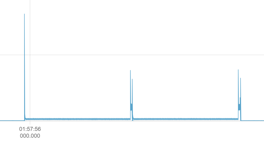 As you’ve no doubt spotted on the power charts, there are 2 second periods that match my ADC code. As I wanted to let the voltage settle, I was leaving the power pins energised for whole second each.