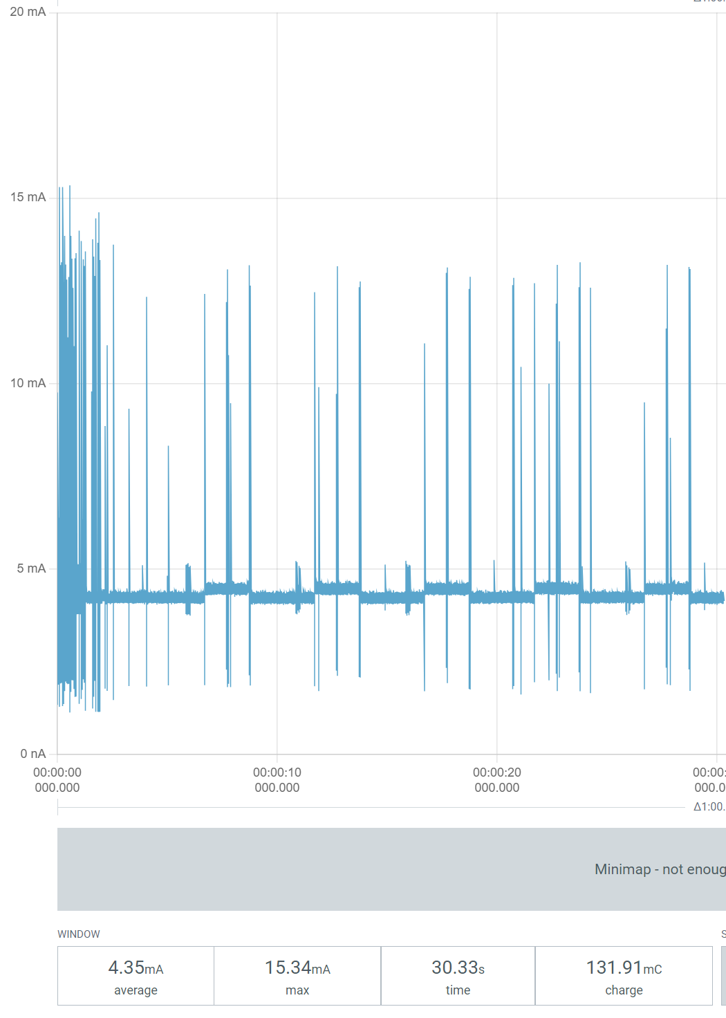 Whilst I waited for a reply from Nordic, I moved to running this low power code on my custom PCB. In theory the MinewSemi module should draw the same amount of power. The results were excellent!