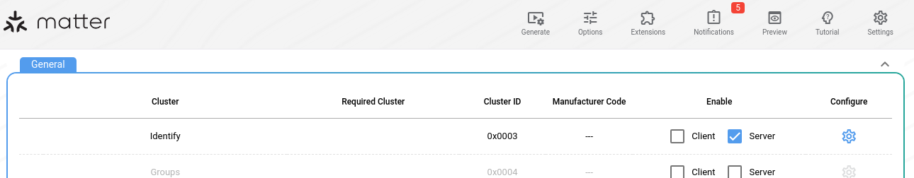 I also checked the Identify command was switched on. This command is mandatory, so it was enabled by default.