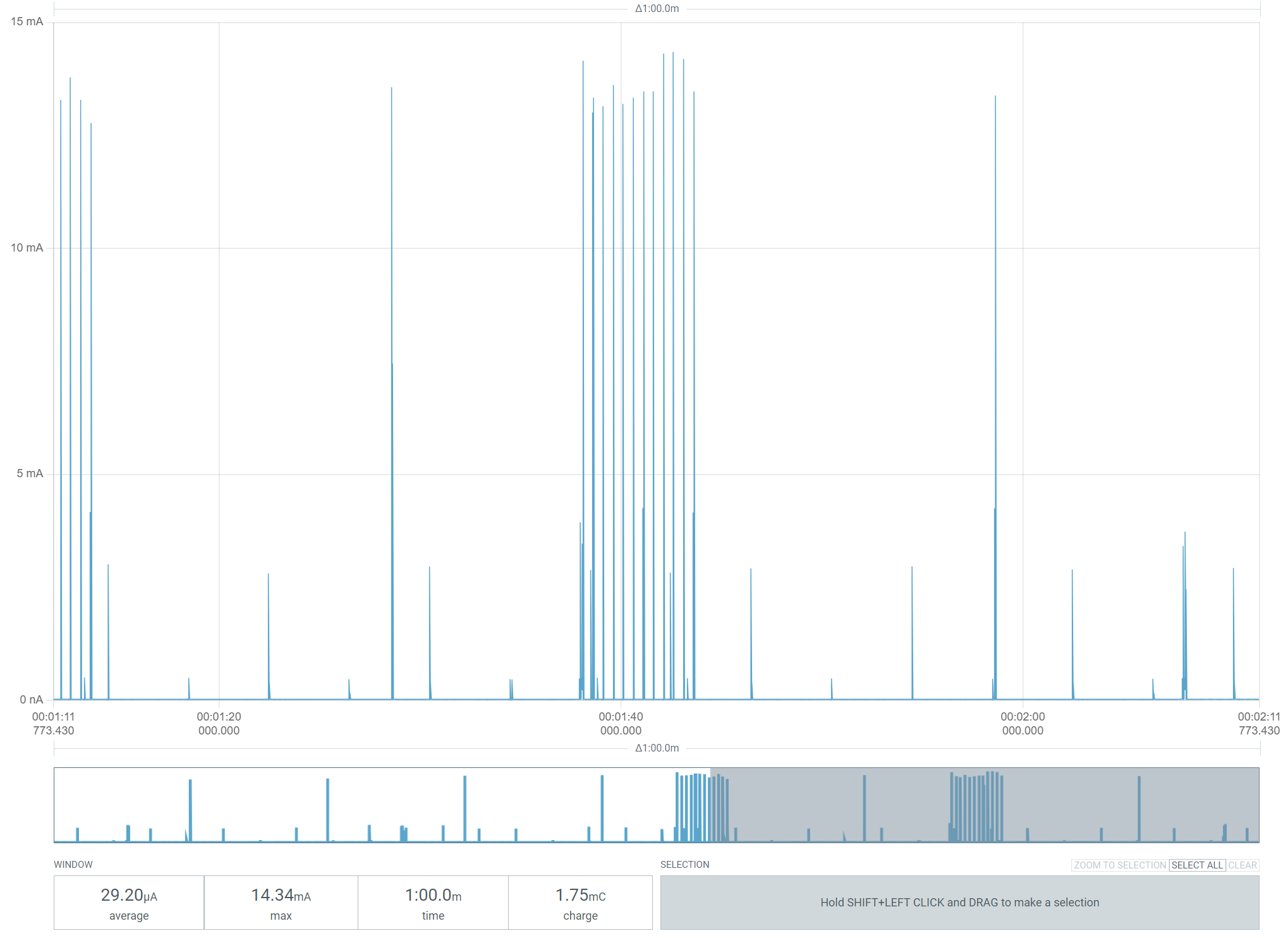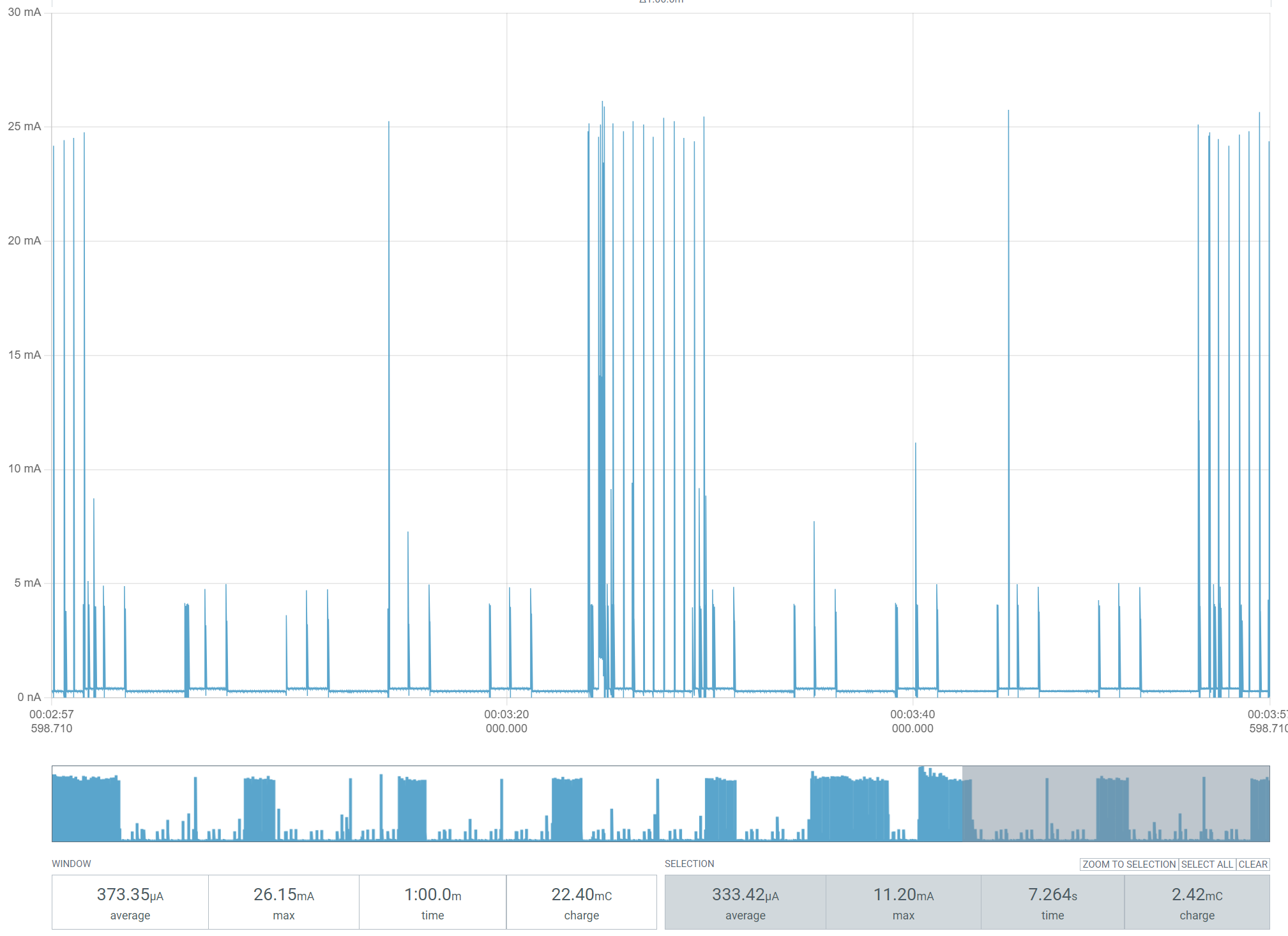 This exercise has gone better than I expected. It’s not matching the low power I achieve with the nRF52840, but that’s not the end of the world. I’ll wait for a response from Nordic on my question and fingers crossed that will give me some pointers.