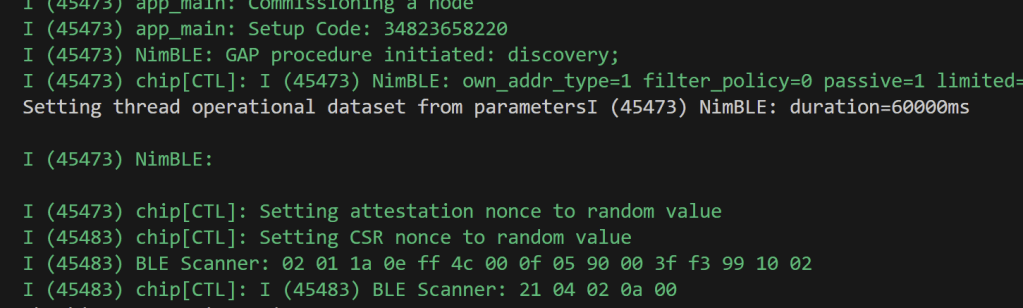 With the mechanism working, I decided to test it out. I put my Office Desk Bulb (a Nano Leaf Thread bulb) into commissioning mode and tried the code.
