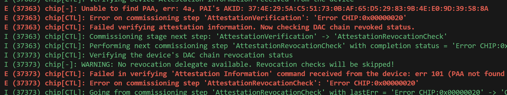 I ran into this *exact* same issue when trying to pair a Nano leaf bulb using the chip-tool. I don’t have the right production certificates.
