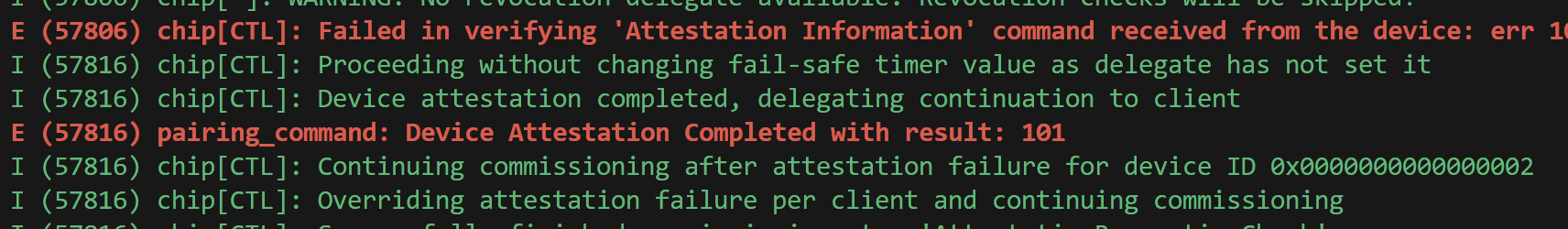 To do this, I just copied the existing esp_matter pairing_command which I had been using. I put it into its own namespace and added the DeviceAttestationDelegate.