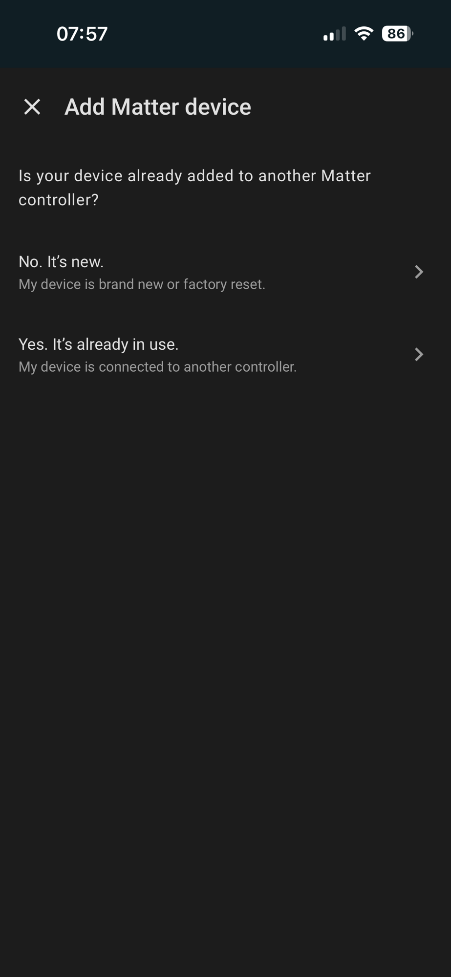I added support for commissioning very early on. You can’t have a Matter Controller if it has nothing to control! And whilst I build the UI to accept a Setup Code, I never did anything with it.