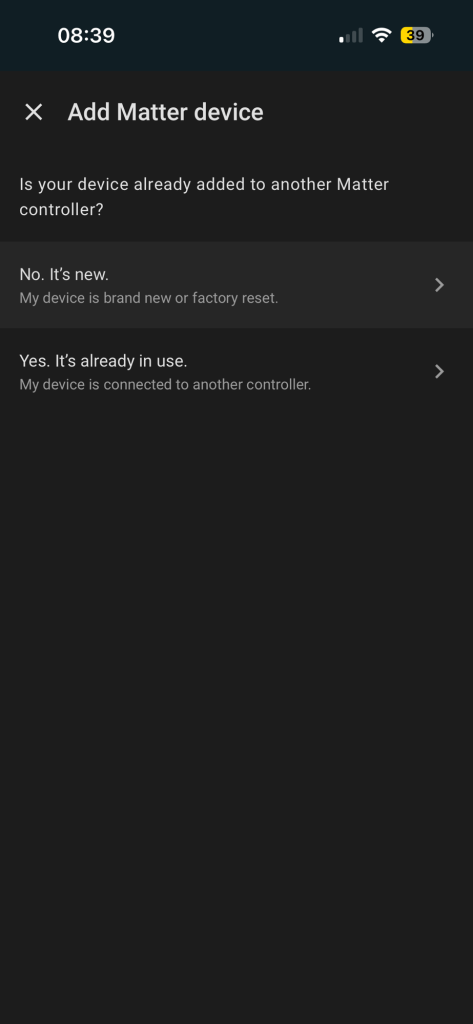 Matter devices can give guidance here if you’re using a QR Code. The QR code can contain information indicating if a device is on-network or can use Bluetooth. Since I’m pairing with just the setup-code, I don’t have that hint.