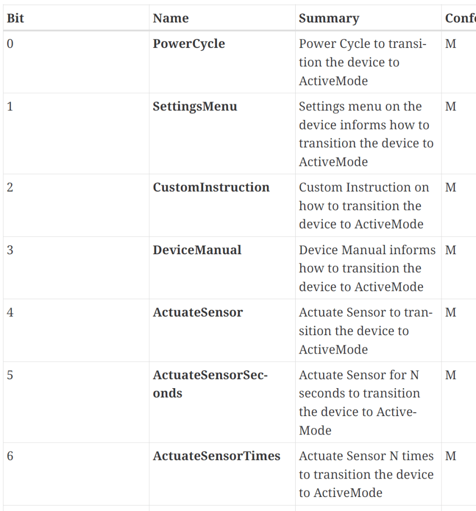 PowerCycle indicates that the user would need to power the device off and on. ActuateSensor covers a physical interaction – perhaps manually moving a blind would wake the device.