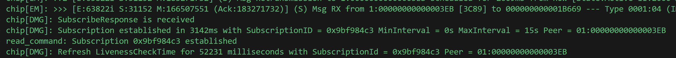 Followed by liveness failures. Liveness is a mechanism that ensures a subscription is actually alive. When a subscription is created, ReportData results are sent periodically. If the subscriber doesn’t get a ReportData within a period of time, the subscription is assumed to be dead.