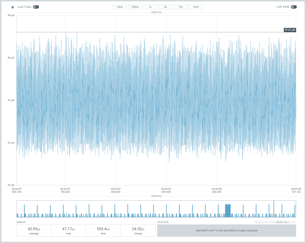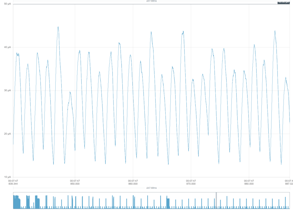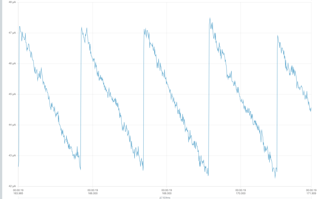 If we zoom in, this looks like something ticking along. The base consumption is also over 40µA.