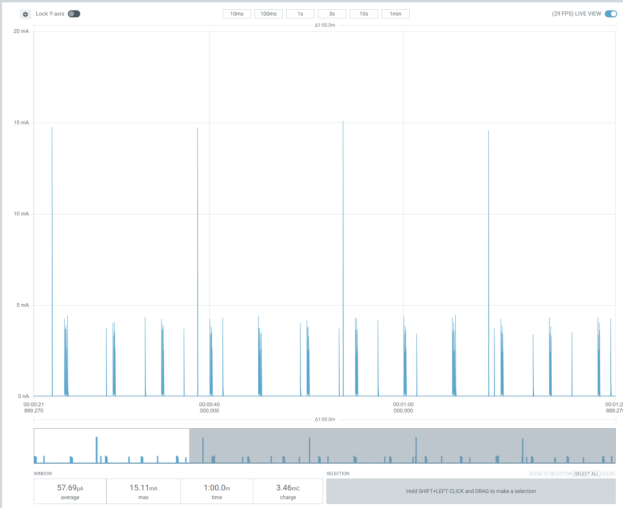 If we zoom in, this looks like something ticking along. The base consumption is also over 40µA.
