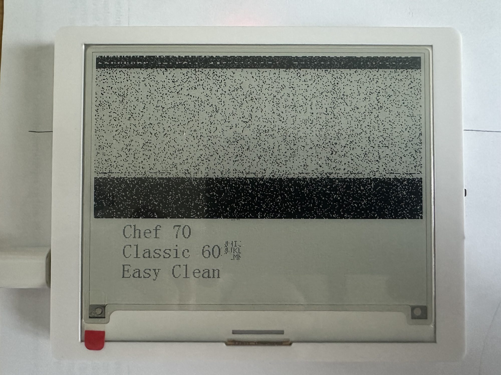The SSD1681 library I was trying to use just didn’t work. I had gone through similar pain with my Home Connect Matter proxy. I had a very rough idea of what bits and bytes made the Elecrow display work. The ones being sent by the library were similar, but different. Possibly because the 1683 is for bigger displays.