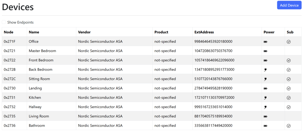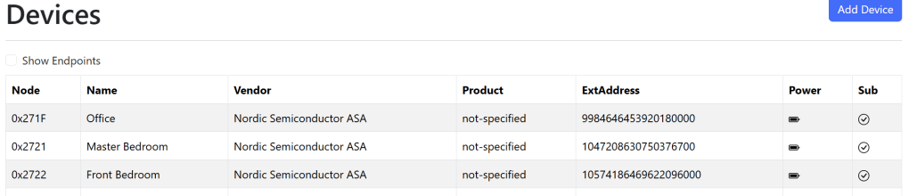 Now I could see everything was essentially connected, I was left even more confused. Nodes 0x271F and 0x2730 seemed like an issue, but both of these devices reconnected.