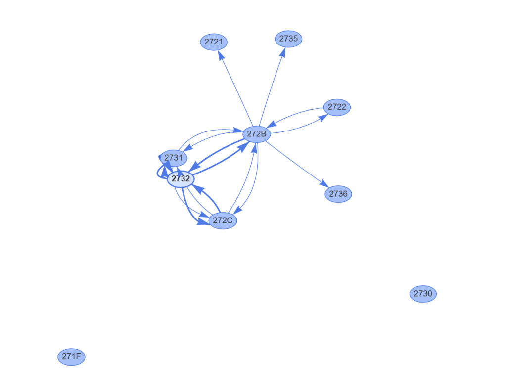 The two little nodes at the bottom, 2730 and 271F, didn’t appear connected at all. However, the lack of arrows didn’t mean they weren’t connected. My Thread network also includes an Open Thread Border Router and a Nanoleaf Thread bulb. Neither the OTBR nor the bulb would be visible to my Controller, so 271F and 2730 could be connected via those.