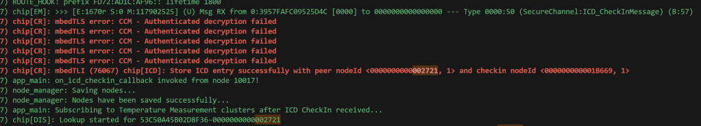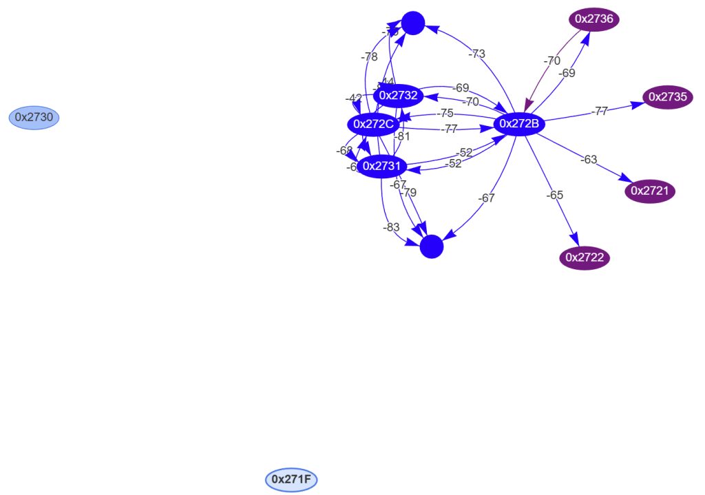 The two devices that couldn’t reconnect, 0x2721 and 0x2735, seems like they had strong connections. RSSI values showed as -63 and -77, well within acceptable limits.