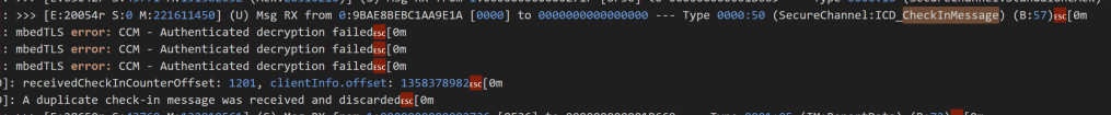 ChipLogError(ICD, "A duplicate check-in message was received and discarded");