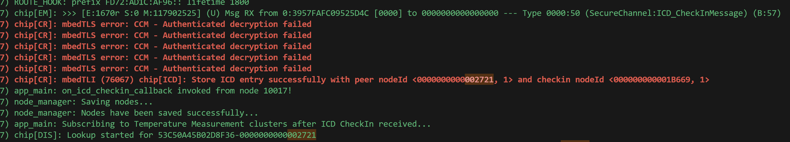 ChipLogError(ICD, "A duplicate check-in message was received and discarded");