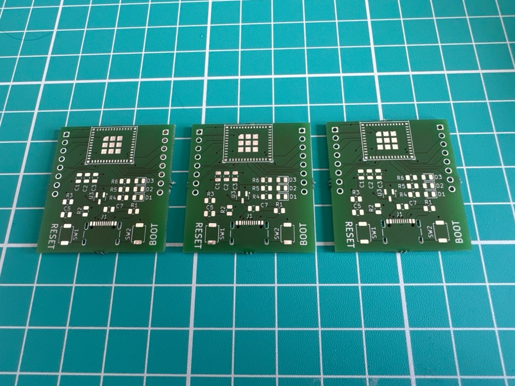The boards have arrived from aisler.net. First impressions – what have I done! The pads under the USB connector are *tiny*!!!