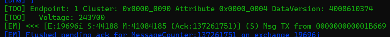 If the attribute is queried, the delegate’s GetVoltage will be called. We can demonstrate that using chip-tool
