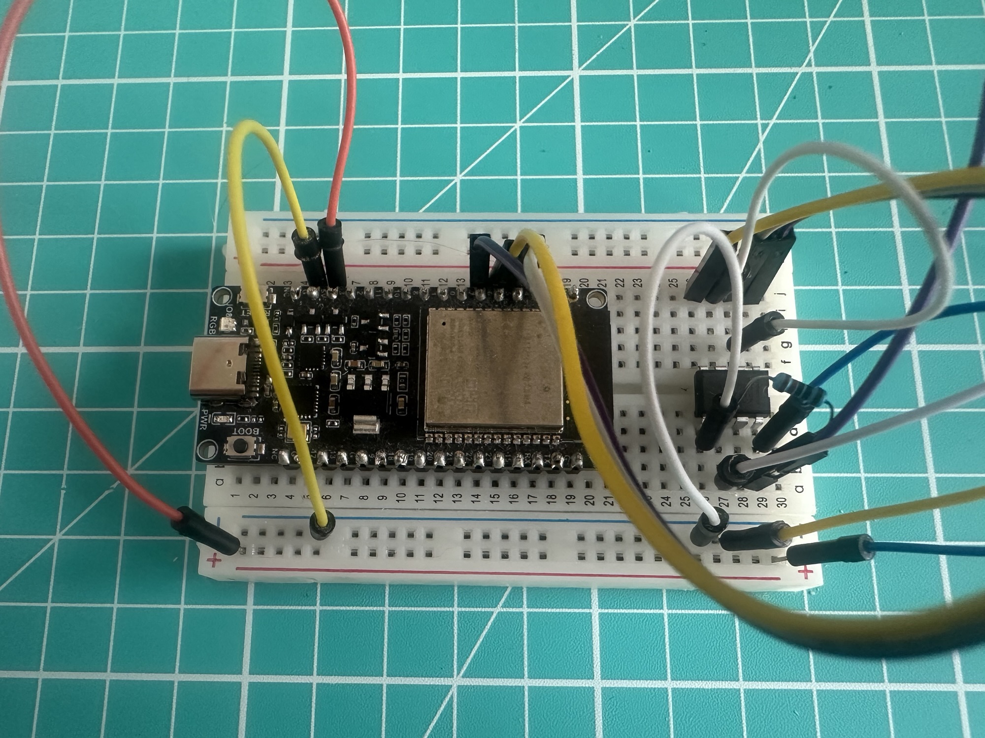 After wiring it up to an ESP32 DevKit from Waveshare, it looks like this: